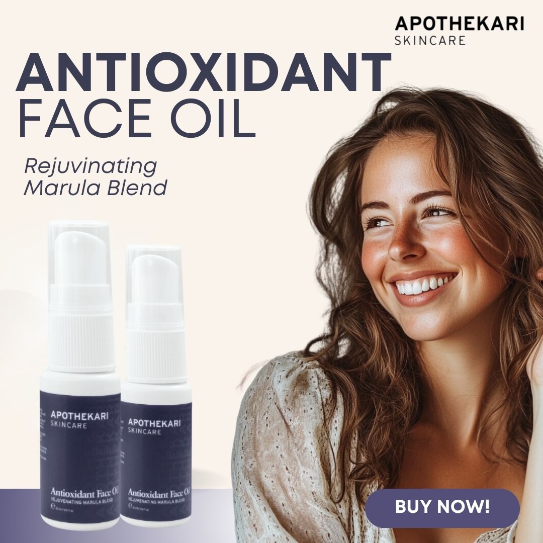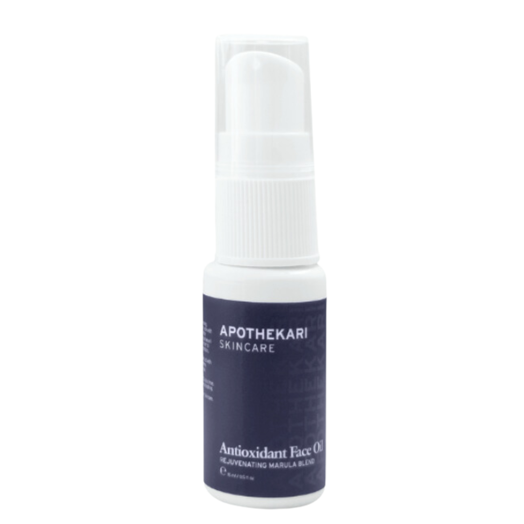 Intense hydration for dry skin! Apothekari Antioxidant Face Oil (15ml/0.5 fl oz) is ultra-nourishing & fast-absorbing, leaving skin feeling velvety soft and looking more radiant. Delicate & calming essential oil. (Note: We are slowing changing over our labels, which is why we've showcased both variations. The product inside is identical!) Protect against dryness, with a blend of nourishing vegetable oils including marula, chia, pomegranate seed and crambe seed. Apothekari Antioxidant Face Oil is rich in fatty acids, sterols and antioxidants to calm and heal. Fast absorbing and suitable for all skin types, it encourages skin rejuvenation and reduces inflammation.
